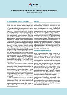 Hjemlevering av varer har vokst raskt innen budbransjen de siste årene. Bransjen preges av stadige endringer, oppstart og nedleggelser av virksomheter. I faktaflaket ser Fafo-forskerne Kristin Jesnes og Elin Svarstad nærmere på virksomheter som driver med hjemlevering av varer med sykkel og varebiler under 3,5 tonn.
